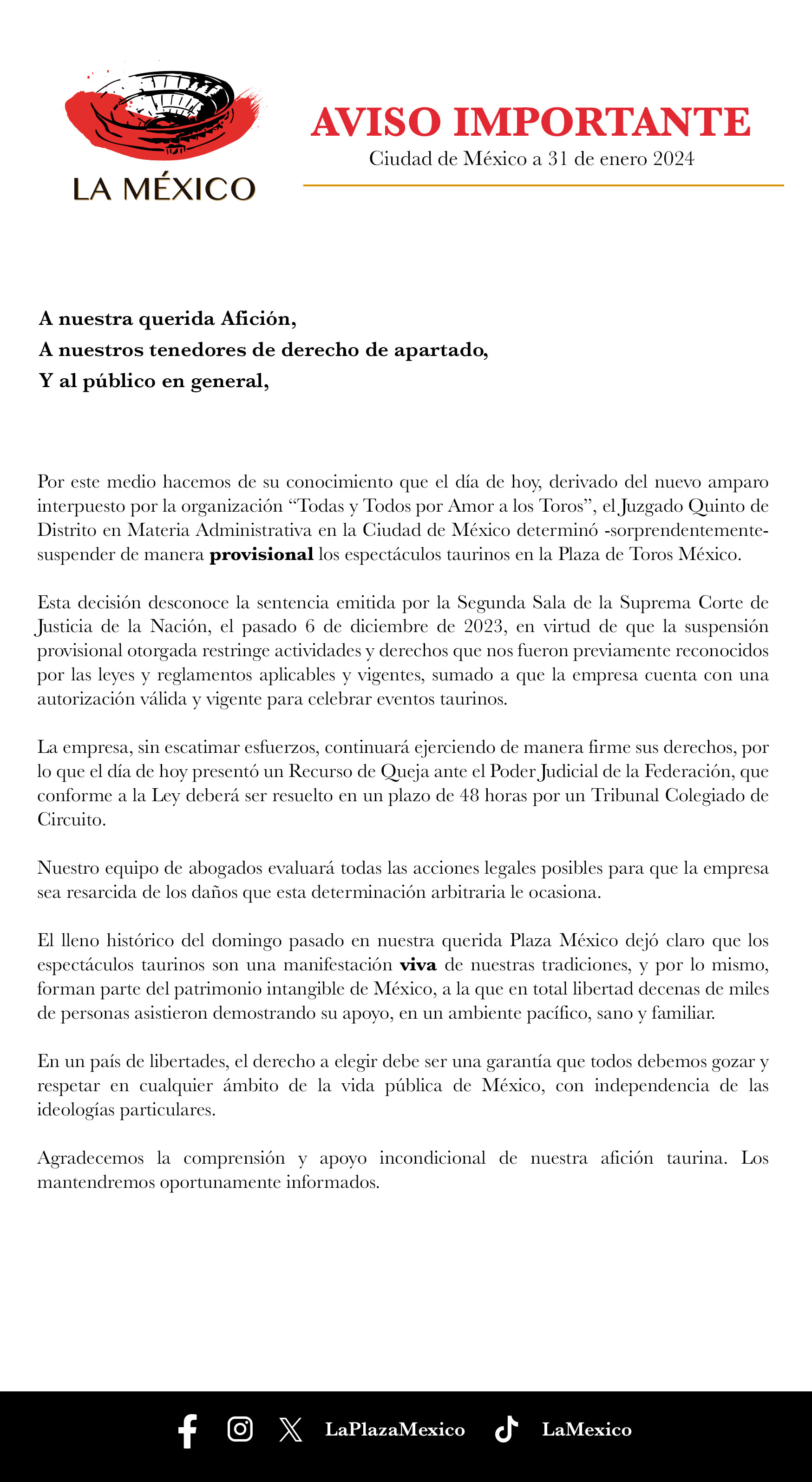 Aviso importante para la afición.