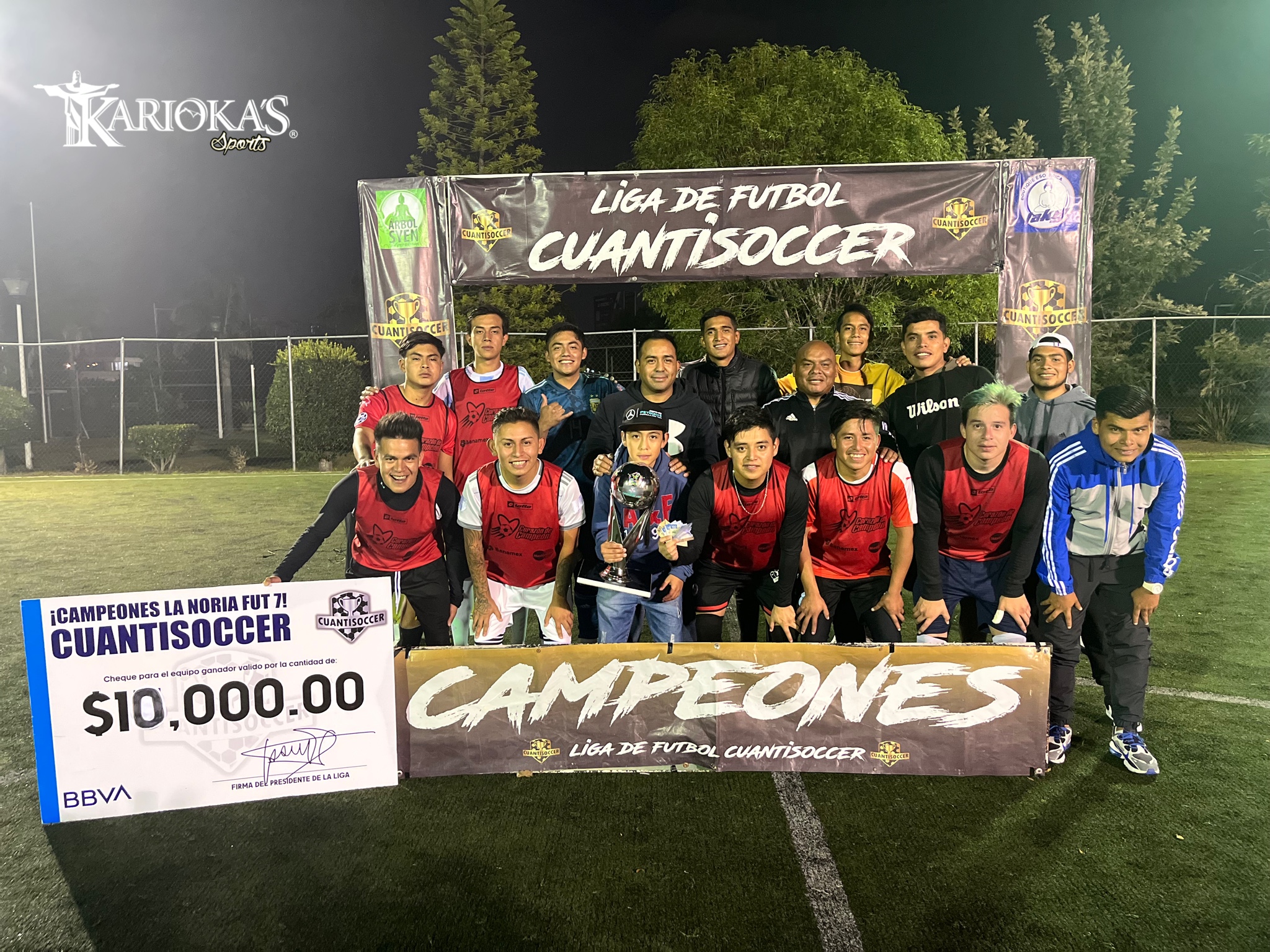 El equipo de Montacargas Jaime se coronó como flamante campeón del torneo intersemanal en la Liga Cuantisoccer La Noria en un gran encuentro ante la escuadra de Tiburones, que Concluyó con el marcador de 2×1 a favor de Montacargas JM.