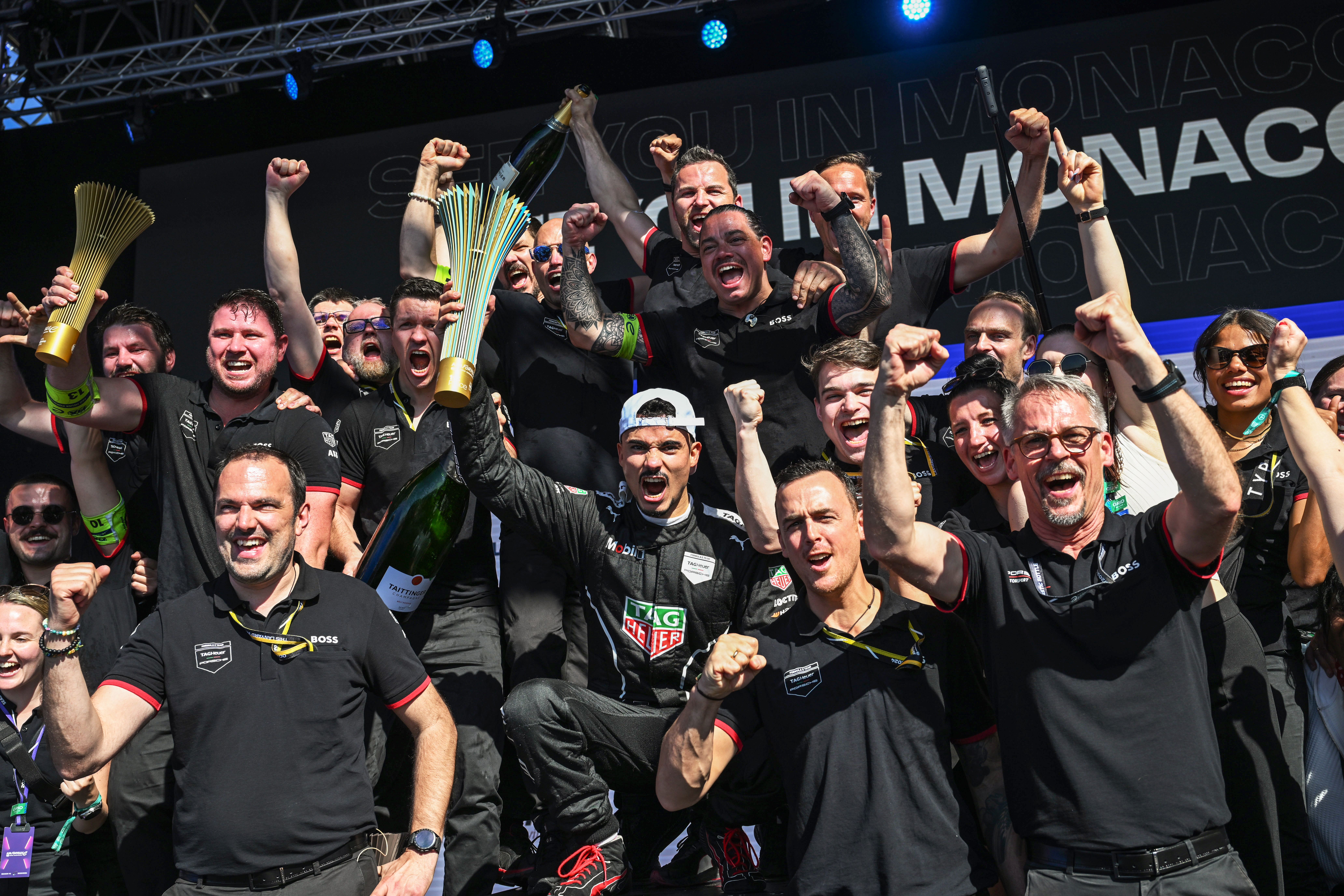 Antonio Felix da Costa, TAG Heuer Porsche Formula E Team, 1st position, celebrates in Parc Ferme