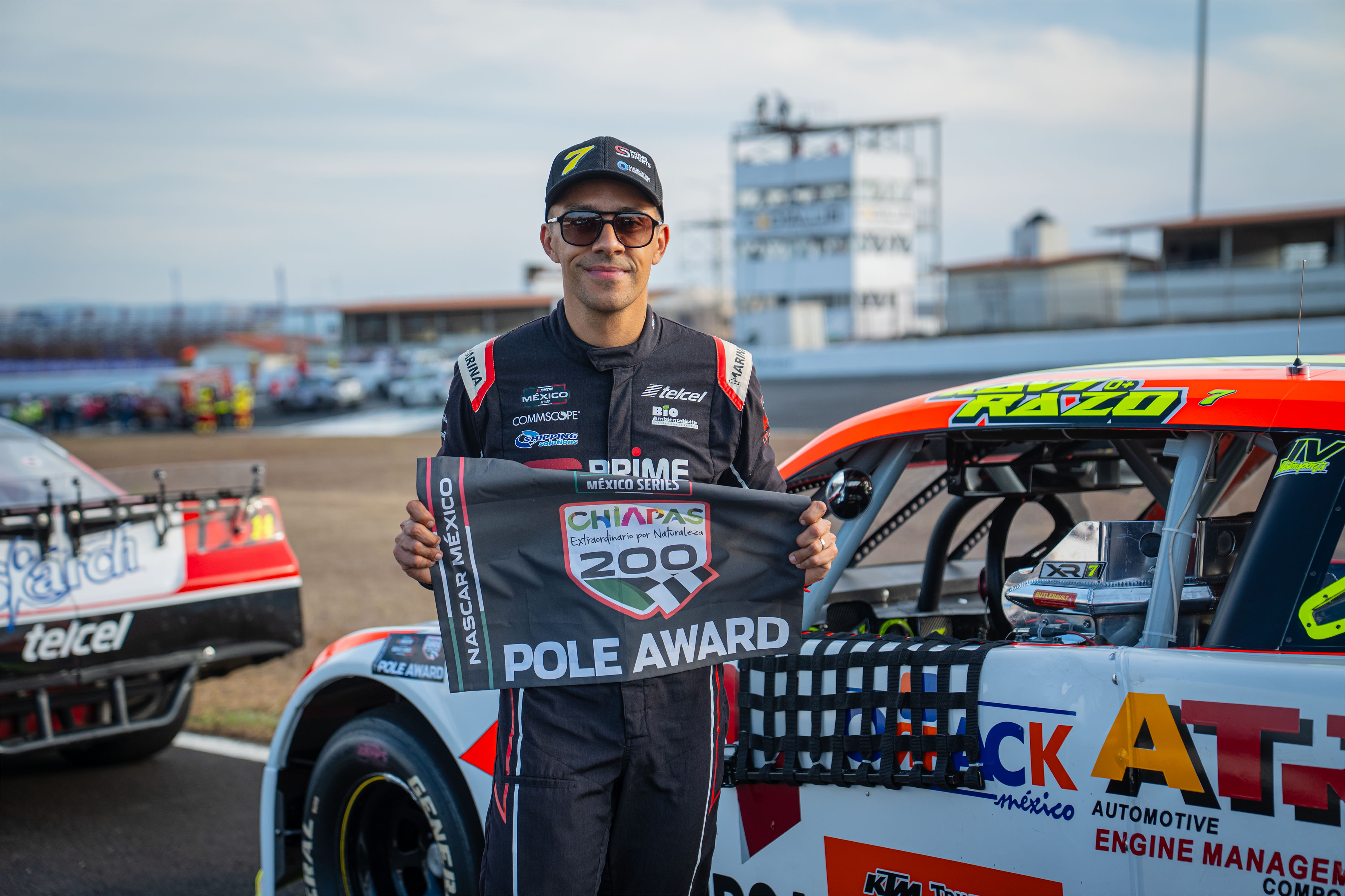 Xavi Razo con el auto No. 7 de Armstrong Armored, encabezará la primera fila en la carrera de NASCAR México Series este domingo 23 de marzo en el Súper Óvalo Chiapas tras conseguir su primera pole en el año, donde buscará quedarse con el máximo galardón.